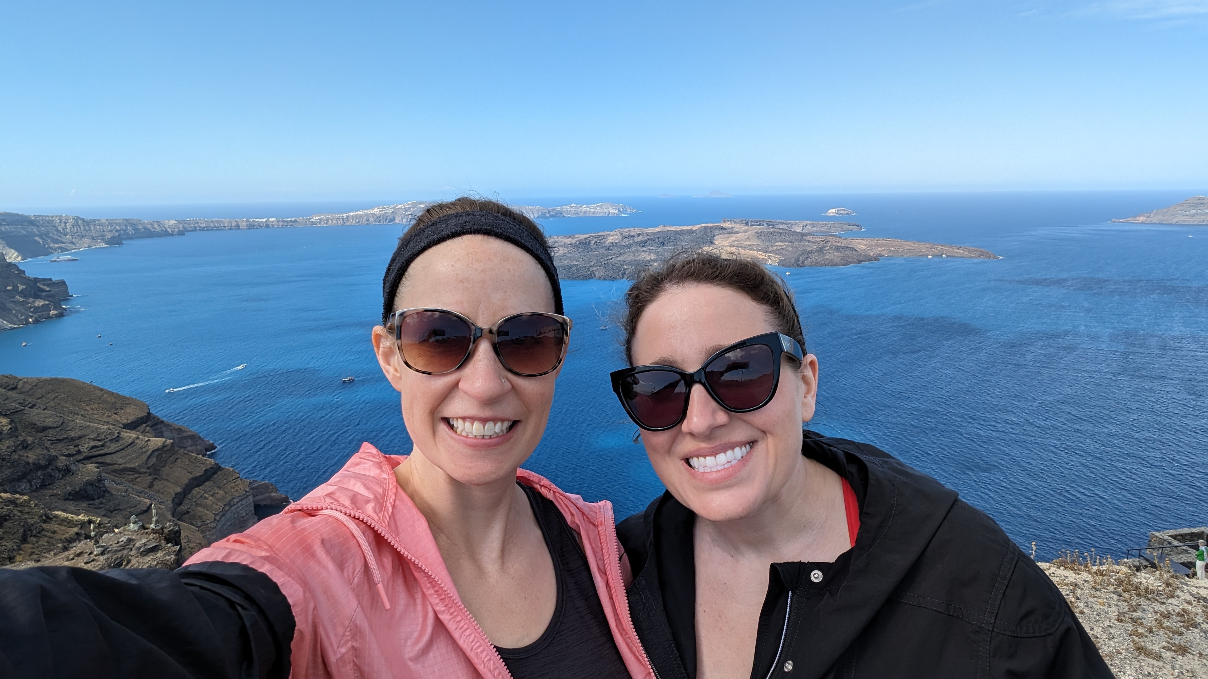 - Day 1: Fly to Santorini from Athens, pick up our rental car, relax by the pool, dinner at Postalia in Mesaria